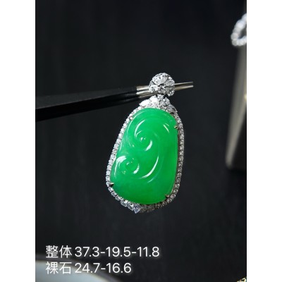 Jade pendant, 18k gold studded with green Ruyi pendant, overall: 37.3-19.5-11.8, bare stone: 24.7-16.6
