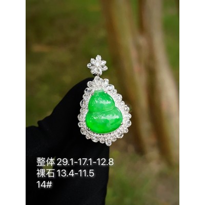 Jade ring, full of green gourd pendant ring dual-purpose, overall: 29.1-17.1-12.8, bare stone: 13.4-11.5